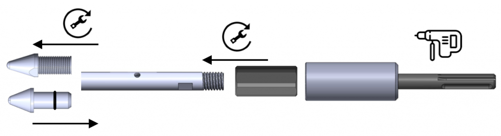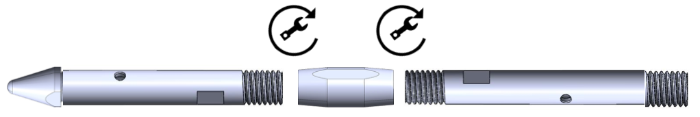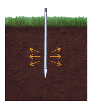 Grot wstrzeliwany – pozwala na iniekcje bezpośrednio przy gruncie (dla lanc iniekcyjnych pełnych) lub/i perforowanych (pełna kompatybilność systemowa). Pasuje do lanc iniekcyjnych JG-CONNECT-PER, JG-CONNECT.