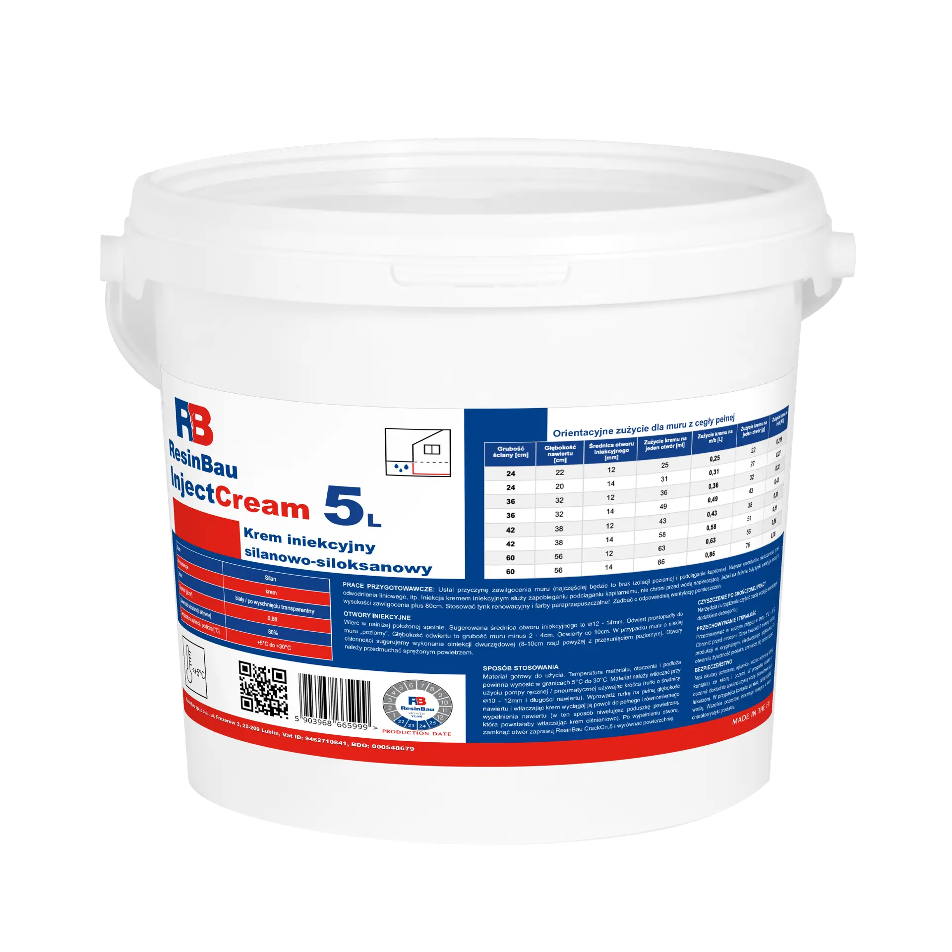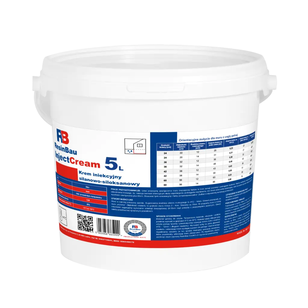 InjectCream can be used in a variety of structures with moisture levels up to 95%. Its action cuts off capillary transport of water. This product also has the advantage of penetrating deeply and very well into the ground. Thanks to it, the horizontal insulation of the walls in no way negatively affects the permeability of water vapor. InjectCream stands out because it is solvent-free and has a high active ingredient content. It can be applied without pressure, which is also an advantage.