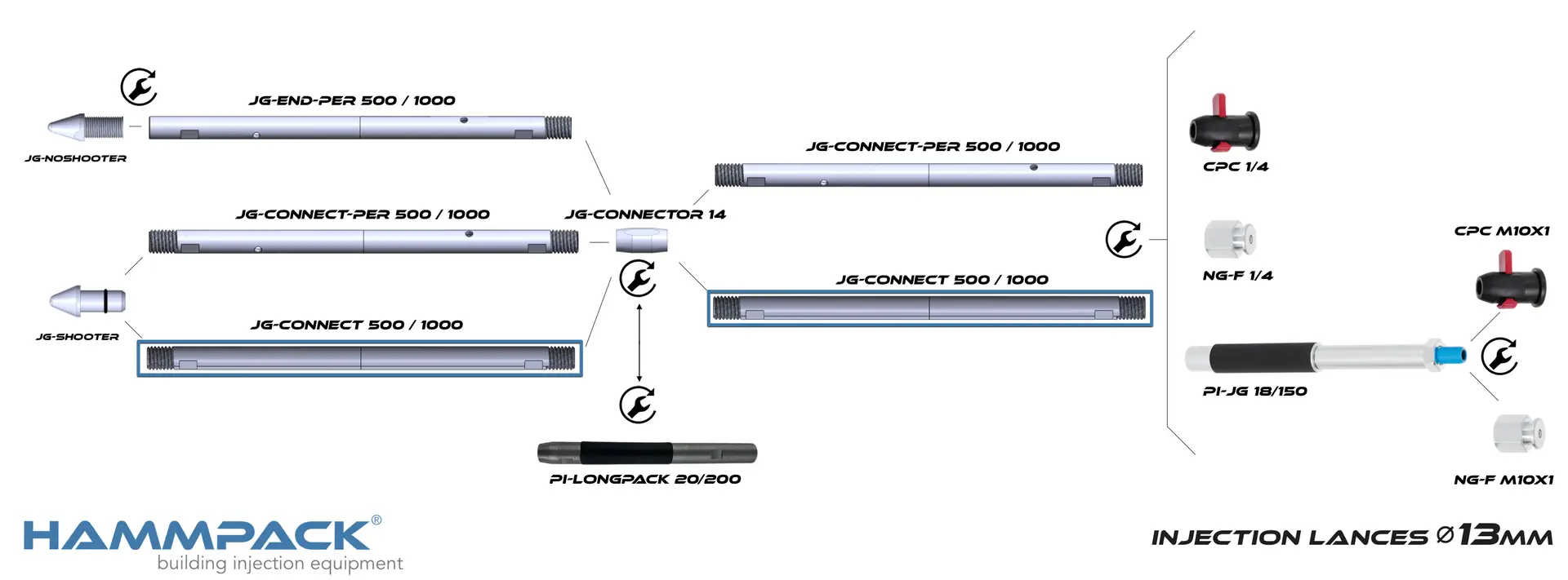 Full injection lance used as an extension of the system in ground injection and as an extension of the system PI-LONGPACK 20/200 (introduction and sealing of the lance at any depth).