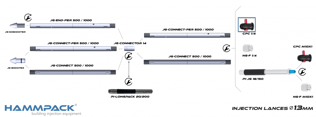 Nasada szczypcowa GW 1/4′ pasuje do pakerów: PI-CEM 14/100, PI-CEM 18/110, oraz do systemu lanc iniekcyjnych Hammpack JG-System.